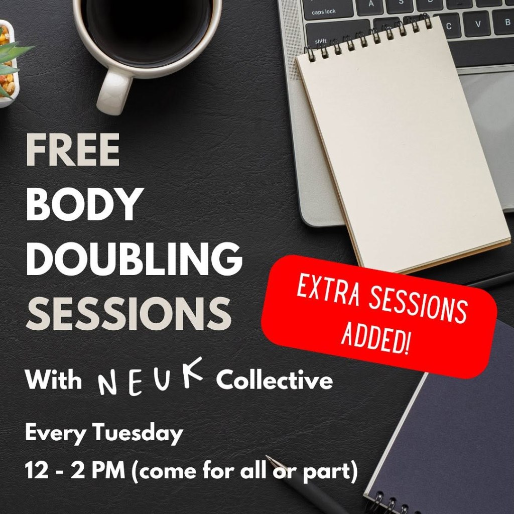 These sessions are run online via zoom in partner-ship with the NEUK collective. Find out more about body doubling here: Body Doubling